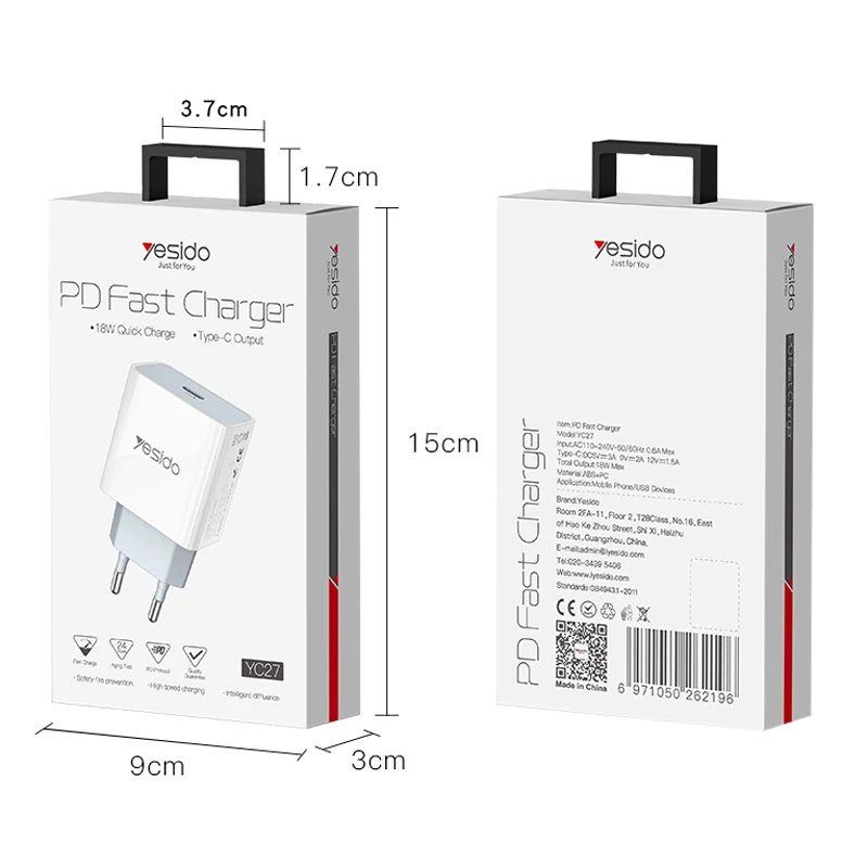 شارژر یسیدو YESIDO YC68 PD 20W Fast Charging Dual Port  Fast Charge